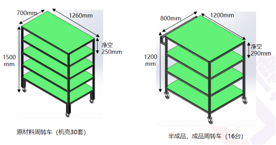 采用功能集群式布局,物流運行距離長,次數多,沒有合適的載具,搬運效率低下。