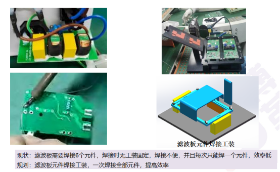 通過連續流布局,配配用設備嵌入生產線,減少生產斷點與搬運,斷點由12降到3個,生產過程搬運距離由860米降到60m